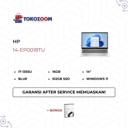 SPESIFIKASI: Processor: Intel Core i7-1355U (up to 5.0 GHz With Intel Turbo Boost Technology, 12 MB L3 cache, 10 cores, 12 threads)