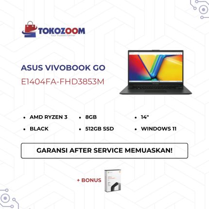 Spesifikasi : Processor : AMD Ryzen™ 3 7320U Mobile Processor (4-core/8-thread, 4MB cache, up to 4.1 GHz max boost)