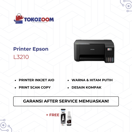 Printer Epson L3210 adalah printer inkjet dengan sistem tangki tinta yang ekonomis, dirancang untuk kebutuhan cetak, pindai, dan salin. Dengan kecepatan dan resolusi cetak yang tinggi, printer ini san...
